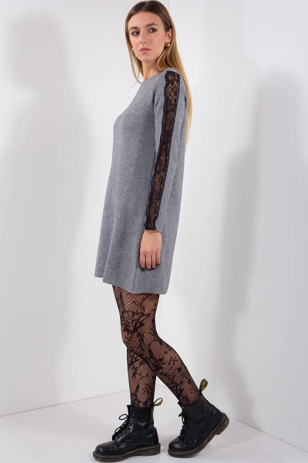 Elegante abito in viscosa che unisce comfort e raffinatezza. Il capo presenta delicati inserti in pizzo nero sulle maniche, creando un contrasto sofisticato con il tessuto fluido della base. La viscosa garantisce una caduta naturale e una sensazione morbida sulla pelle, mentre i dettagli in pizzo aggiungono un tocco di femminilità senza compromessi. Perfetto per occasioni speciali o per elevare lo stile quotidiano con un'allure contemporanea e sensuale.