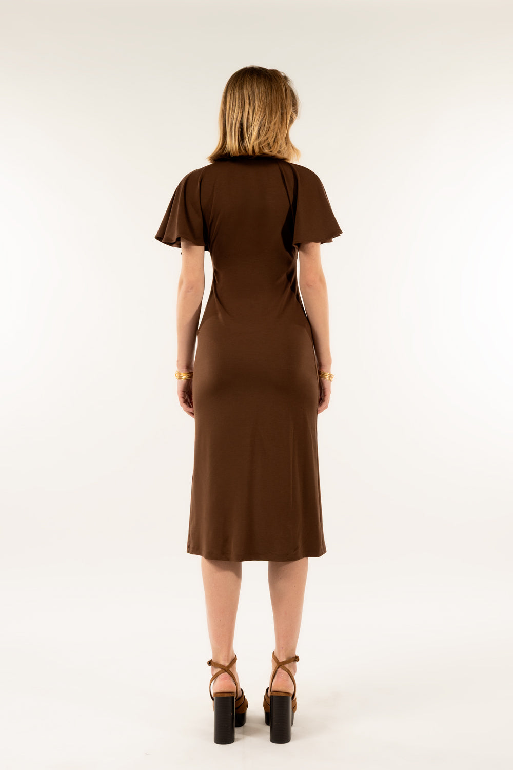 Abito polo in tessuto misto con alamari, realizzato in pregiata composizione: 66% viscosa, 29% poliammide, 6% elastan. La viscosa garantisce morbidezza e drappeggio elegante, mentre la poliammide assicura resistenza e durabilità nel tempo. L'elastan conferisce elasticità e comfort di movimento.
