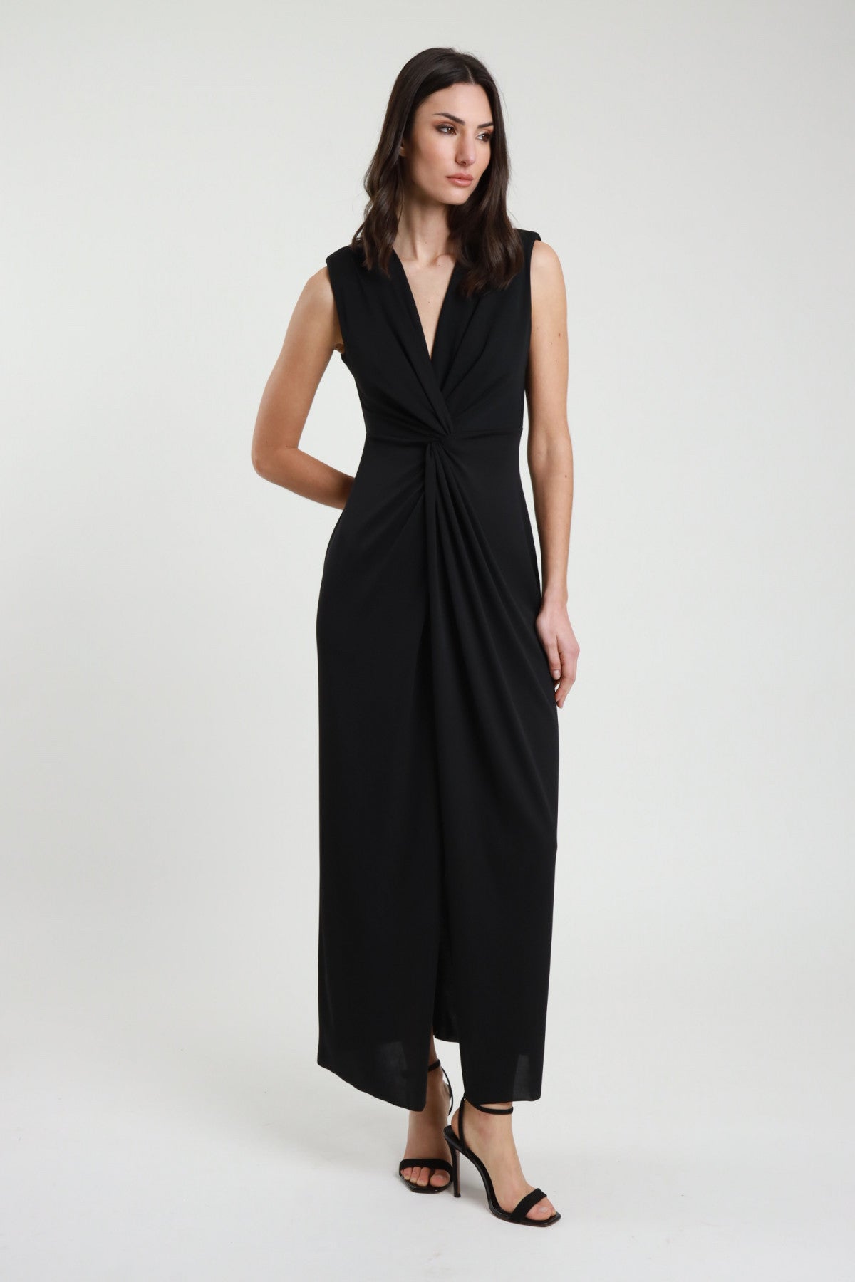 Abito Lungo Smanicato con Nodo e Spacco sul Fronte.
