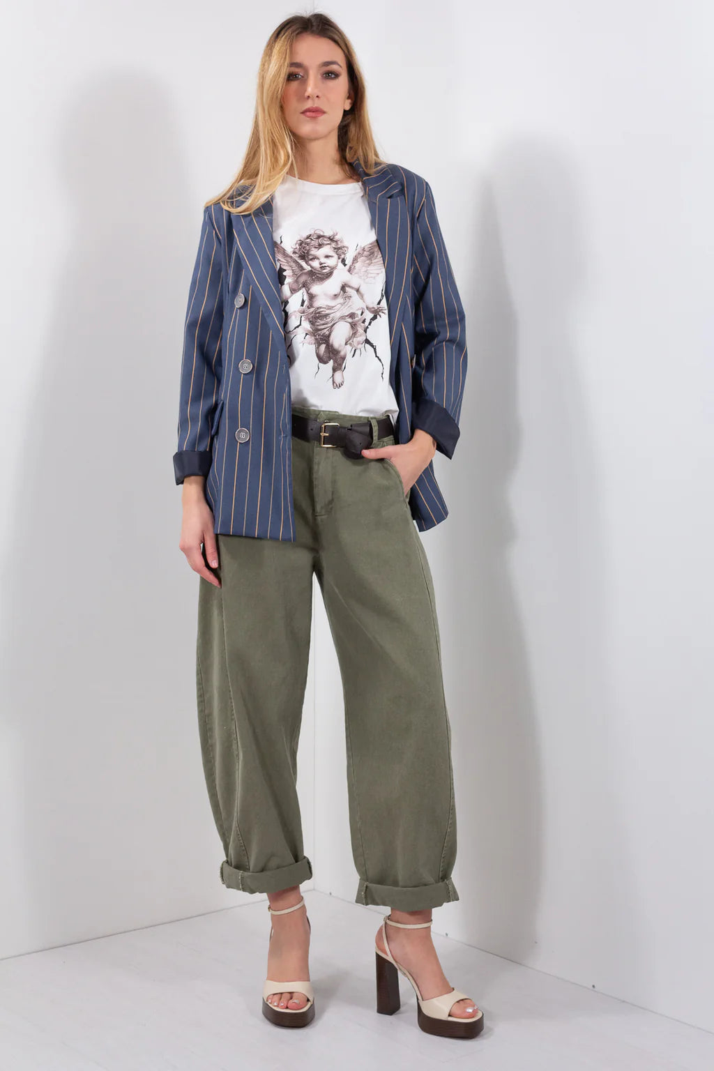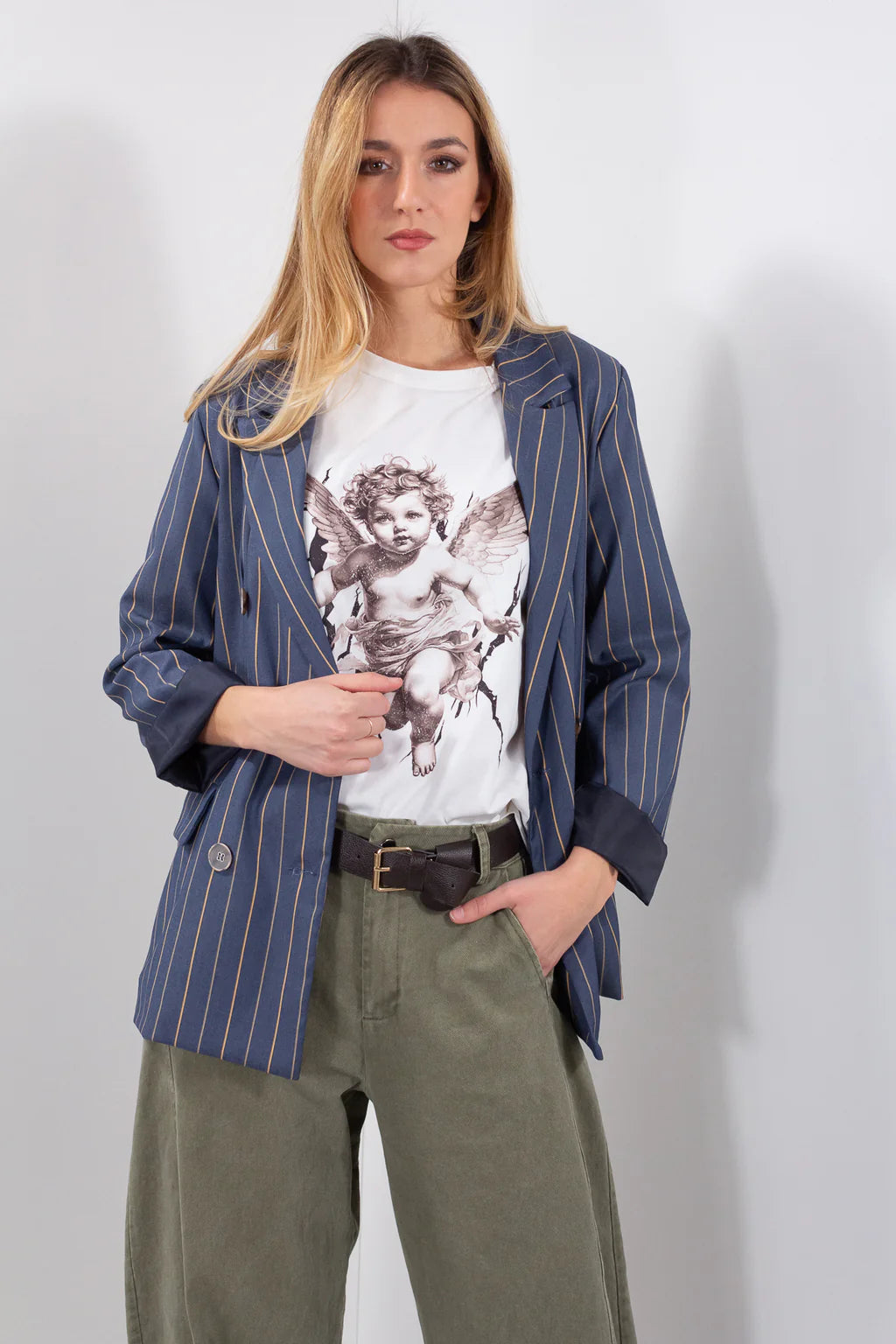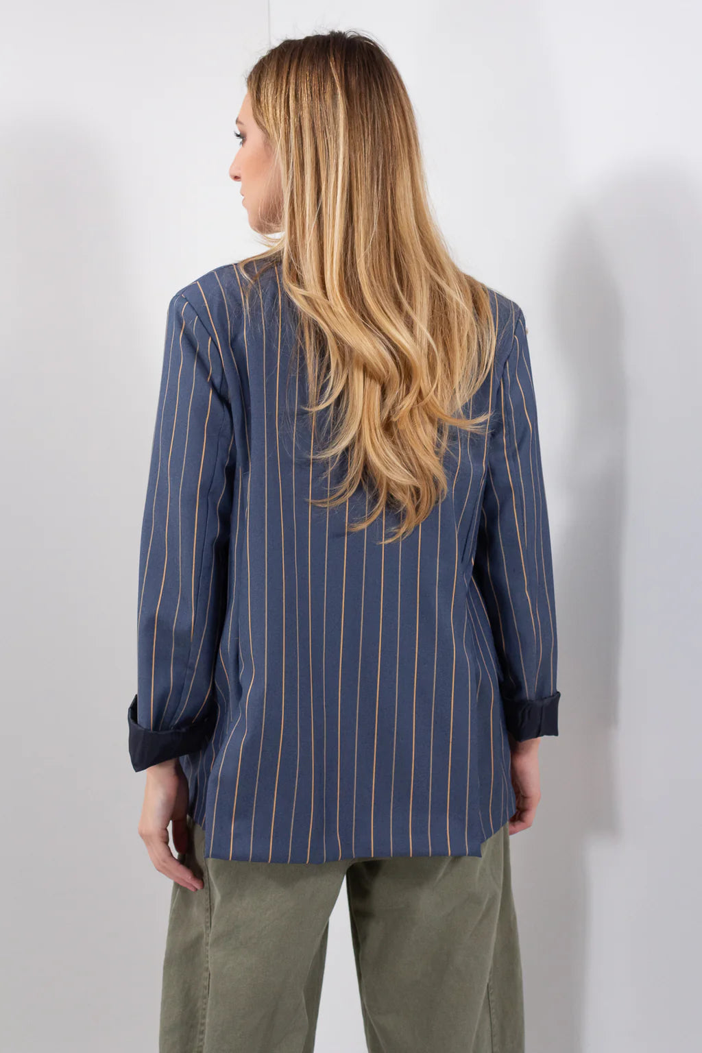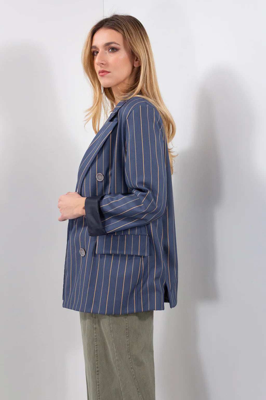 Elegante giacca doppiopetto in tessuto gessato, perfetta per uno stile sofisticato e versatile. Caratterizzata da uno scollo rever classico e bottoni di qualità, offre una silhouette impeccabile. La fodera interna garantisce comfort e durabilità nel tempo. Un capo essenziale per chi ricerca eleganza senza compromessi, ideale per occasioni formali e outfit di tendenza.
