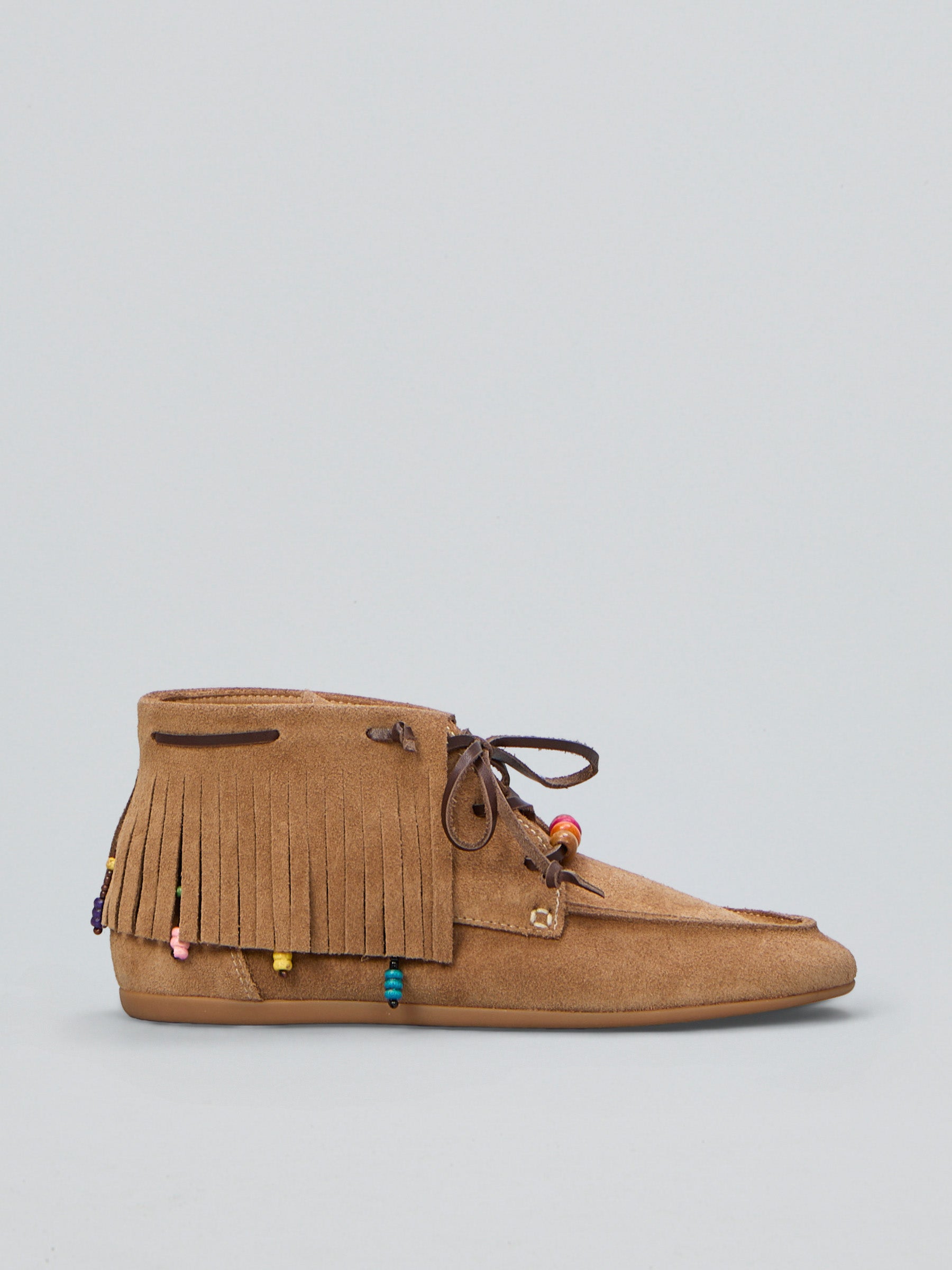 Elegante scarpa bassa in camoscio marrone della collezione Ovyè, perfetta per chi ricerca versatilità e comfort. La tomaia in morbido camoscio si abbina a una fodera in ecopelle e a un sottopiede in pelle naturale per una calzata accogliente. La suola in gomma garantisce stabilità e durata nel tempo. Ideale per occasioni casual, cocktail party, cene eleganti e ambienti professionali, questa scarpa mocassino unisce stile femminile a praticità quotidiana.